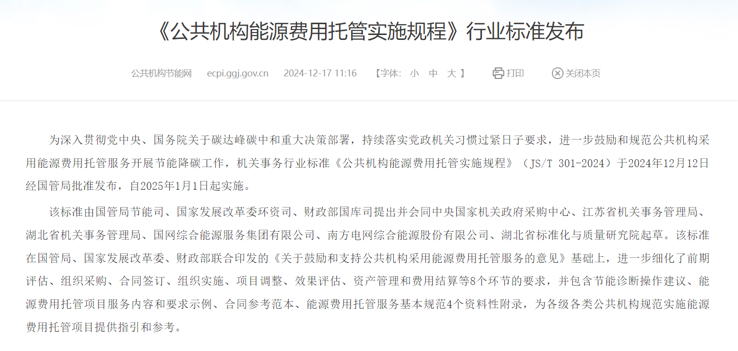 國管局關于2025年公共機構節約能源資源工作安排的通知國管局關于2025年公共機構節約能源資源工作安排的通知國管節能〔2025〕21號各省、自治區、直轄市和新疆生產建設兵團機關事務管理部門,廣東省能源局,中央國家機關各部門:2025年是“十四五”規劃收官之年。公共機構節約能源資源工作要堅持以習近平新時代中國特色社會主義思想為指導,全面貫徹黨的二十大和二十屆二中、三中全會精神,深入落實習近平總書記關于機關事務工作的重要指示精神,立足服務經濟社會發展定位查看詳情>>