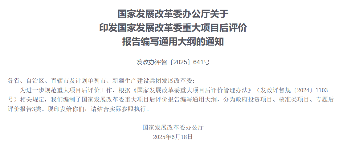 國家發展改革委辦公廳關于印發國家發展改革委重大項目后評價報告編寫通用大綱的通知